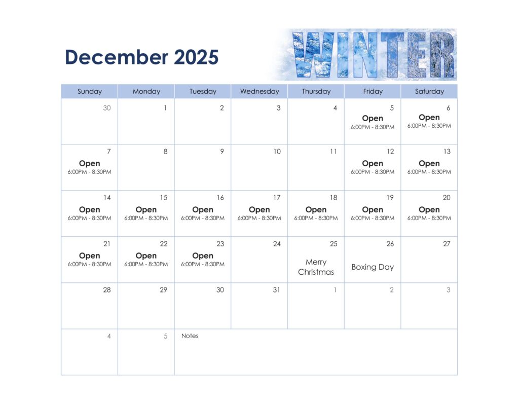 Dec 5, 6, 7 (Fri/Sat/Sun)